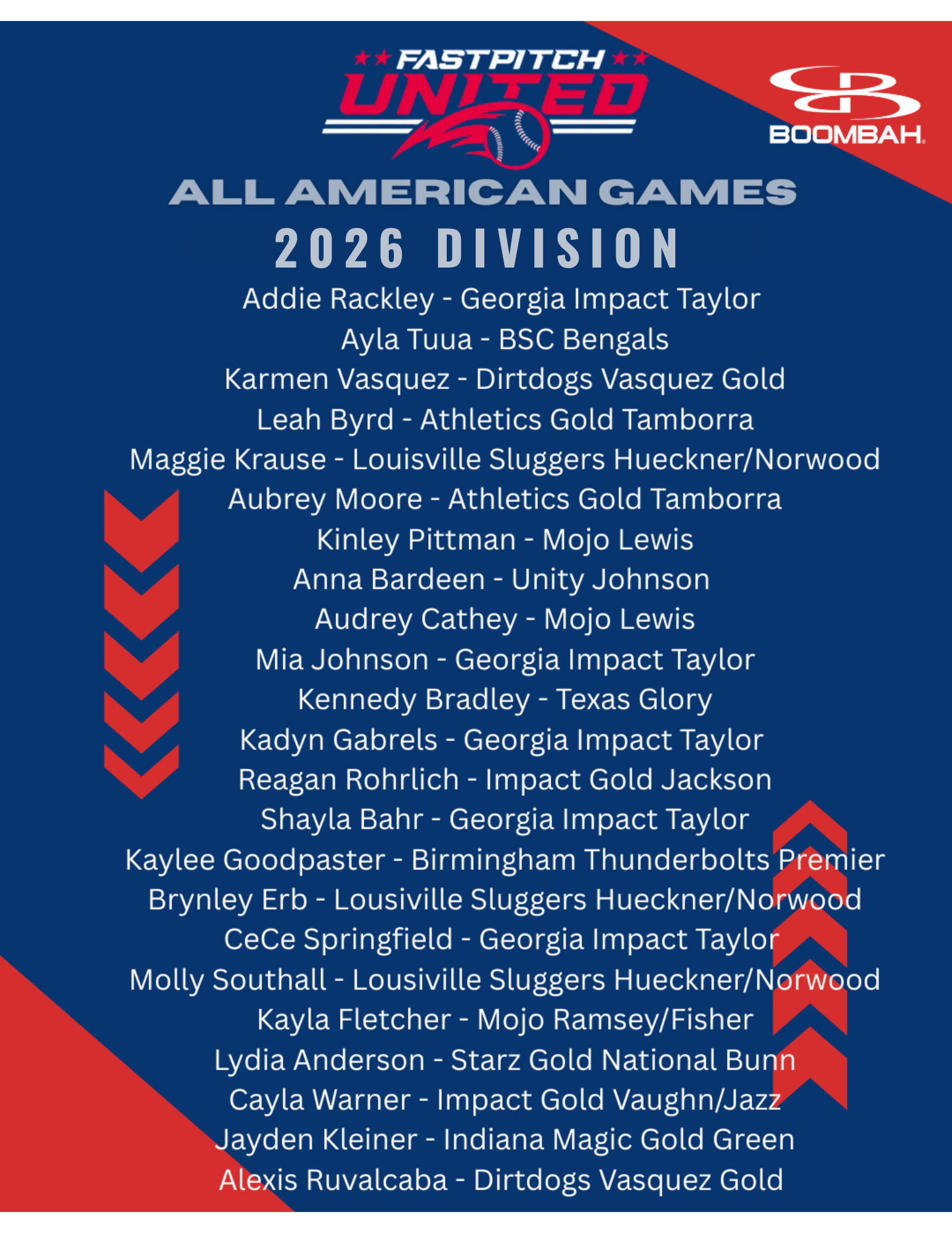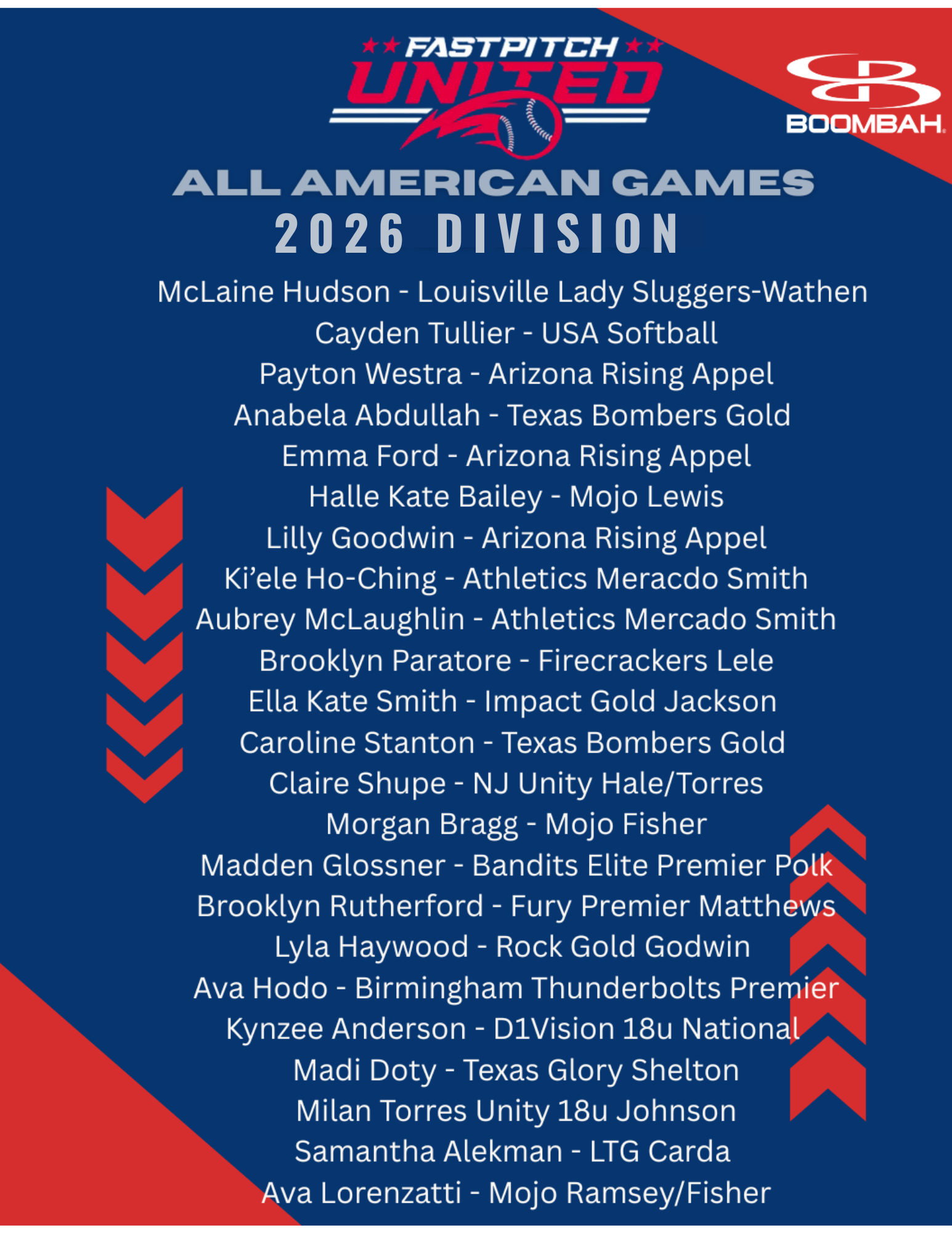 The junior players who will make up the four teams to compete in the Boombah All-American Games this summer have been announced and include many of the elite players who made also made the Line Drive 2026 HOT 100 player rankings.