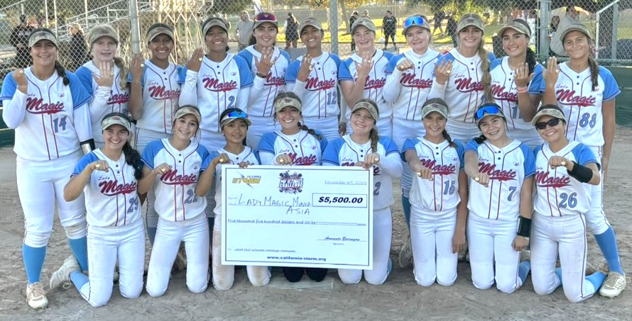 The key inning was the bottom of the 4th, when the Lady Magic scored five times before adding three more in the 5th to complete the scoring. The offense had 13 hits for the champs and 2028 outfielder Bella Hernandez matched Jobe’s three hits by going 3-for-3 with two runs scored.