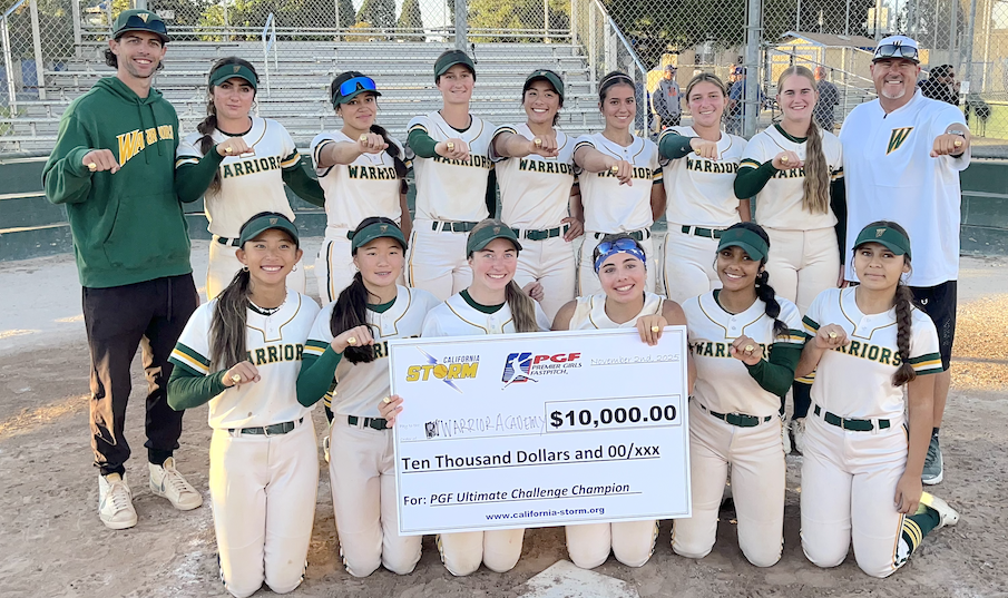 Warrior Academy outscored its opponents 29-to-0 with the three wins being 10-0 over CA Storm – Troy, 6-0 against So Cal A’s – Colon and 13-0 versus Lady Magic – Munoz/Asia)