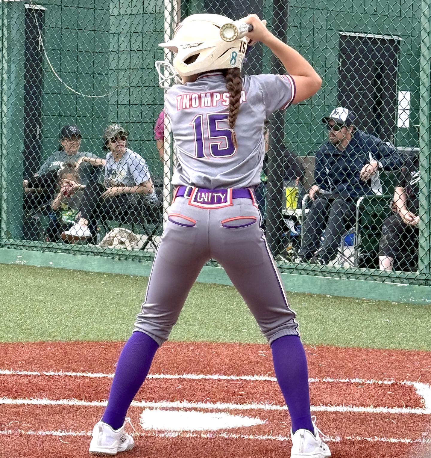 The athlete at the plate for her Unity 12-U team.