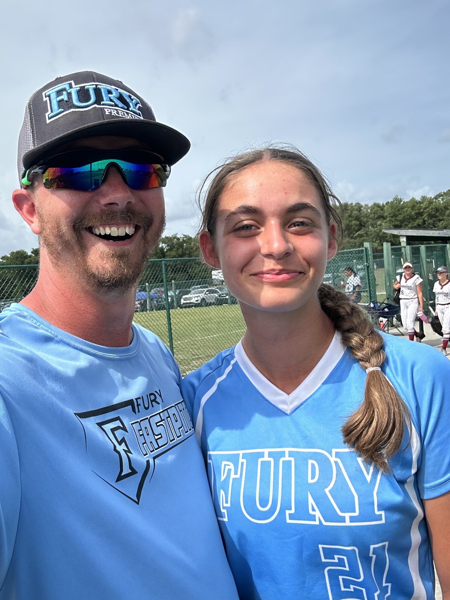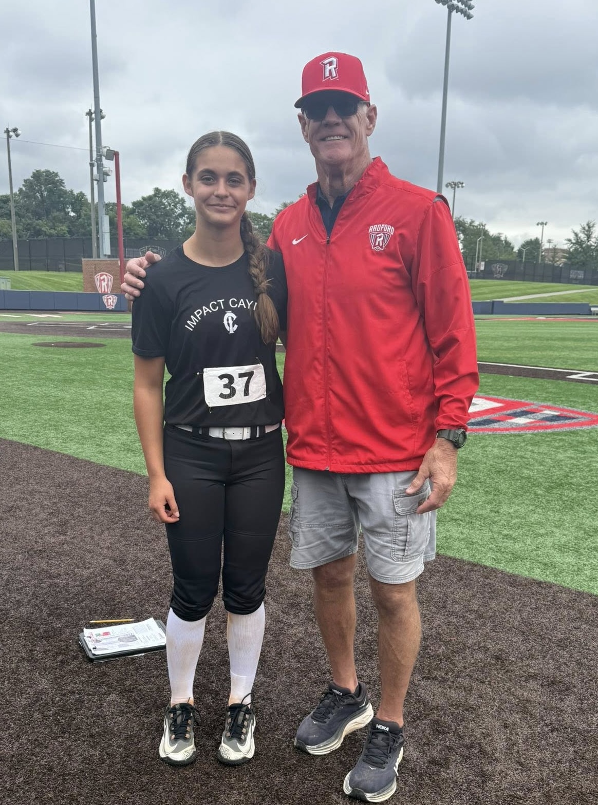 Sophie’s travel ball coach TC Wall, who now is the head of the Impact Caymol National ‘28/‘29 – Wall team, has had a front row seat in seeing how his talented catcher handles—and overcomes—her medical malady and marvels at how his young player has overcome something that might have led many to hang up her gloves and cleats.