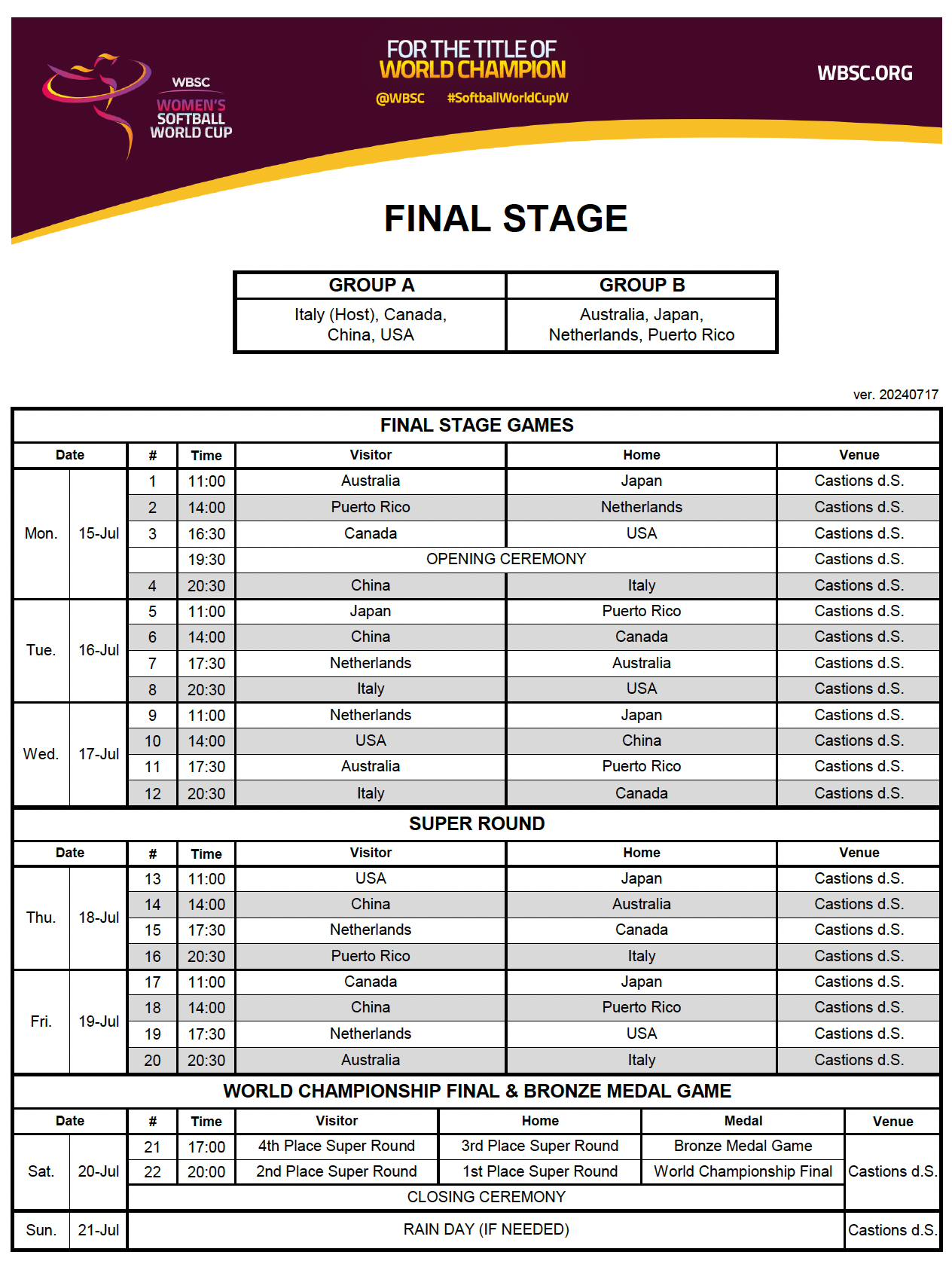 Capping off the Super Round, the U.S. Women’s National Team (WNT) improved to 5-0 at the 2024 World Baseball Softball Confederation (WBSC) World Cup Finals after posting a 7-0 run-rule victory over the Netherlands on Friday in Castions Di Strada, Italy.