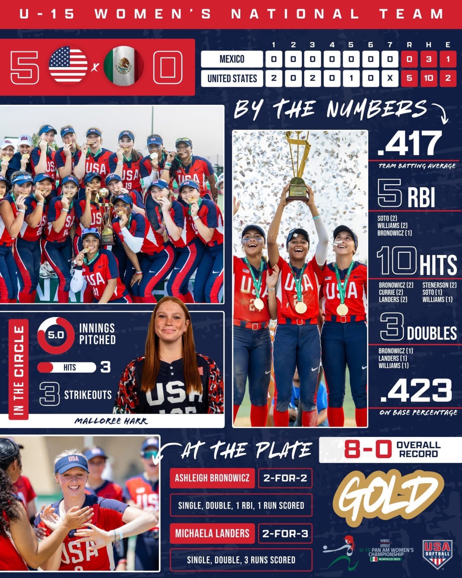 Friday evening in Acapulco, Mexico, Team USA completed a dominating run through the 2025 U-15 Pan American Championship by defeating Mexico in the Gold Medal championship by a score of 5-0.