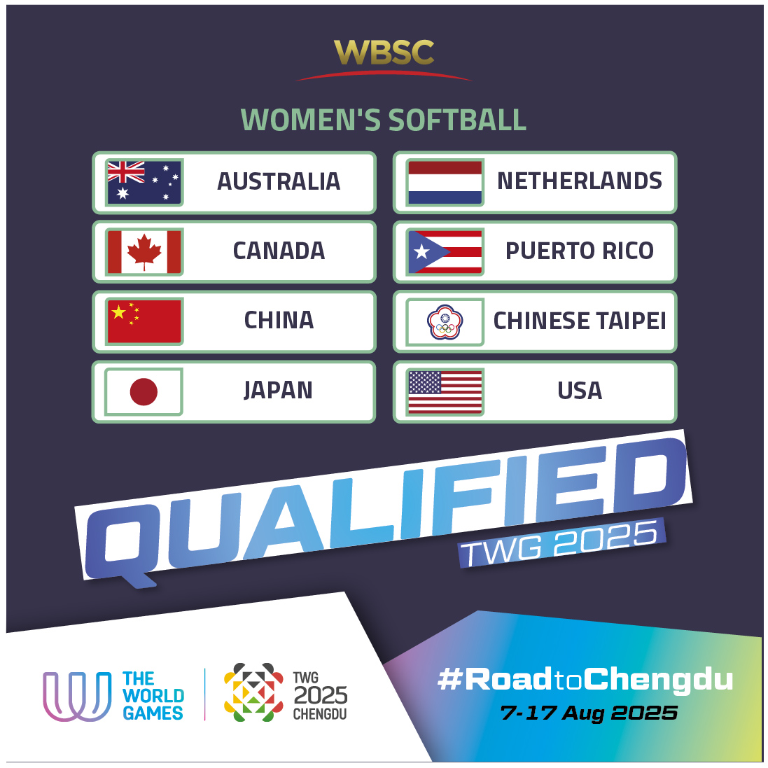 The World Baseball Softball Confederation (WBSC) unveiled the qualified teams and wild cards for The World Games 2025 in Chengdu, China.