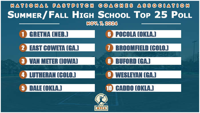 On Thursday (Nov. 7), the NFCA announced its final Top 25 teams in the NFCA Summer/Fall High School Top 25… here’s the release the Louisville, Ky.-based organization…