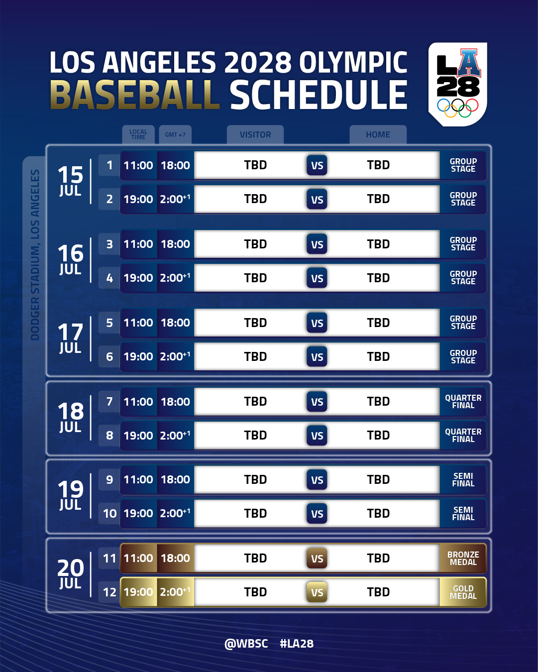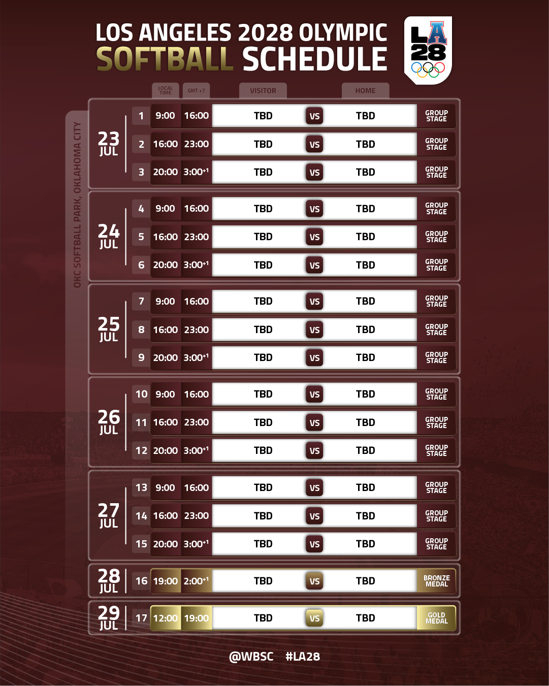 The bronze medal game is set for 28 July at 19:00, followed by the gold medal game at 12:00 on 29 July – which will determine the 6th Olympic softball champion – one day before the Closing Ceremony of the Olympic Games LA28.