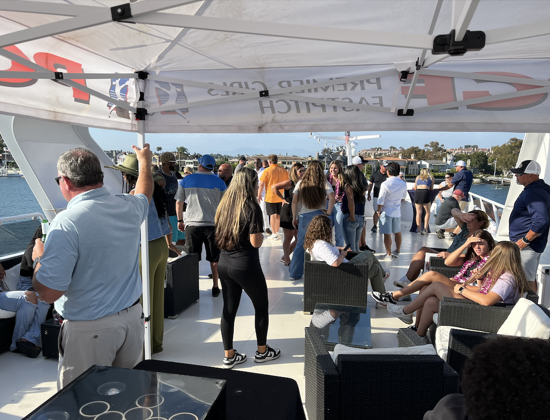 At 2:30 pm, the players and their families drove to Newport Beach to board a large and exquisite yacht that took all on a four hour slow “cruise” around the Newport Beach Harbor.