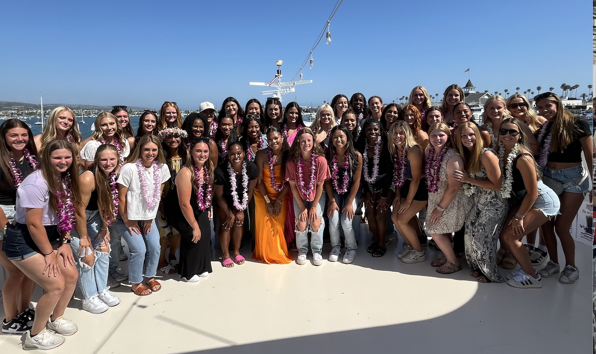 The PGF All-Americans pose on the top deck of their Newport Harbor cruise Monday afternoon.