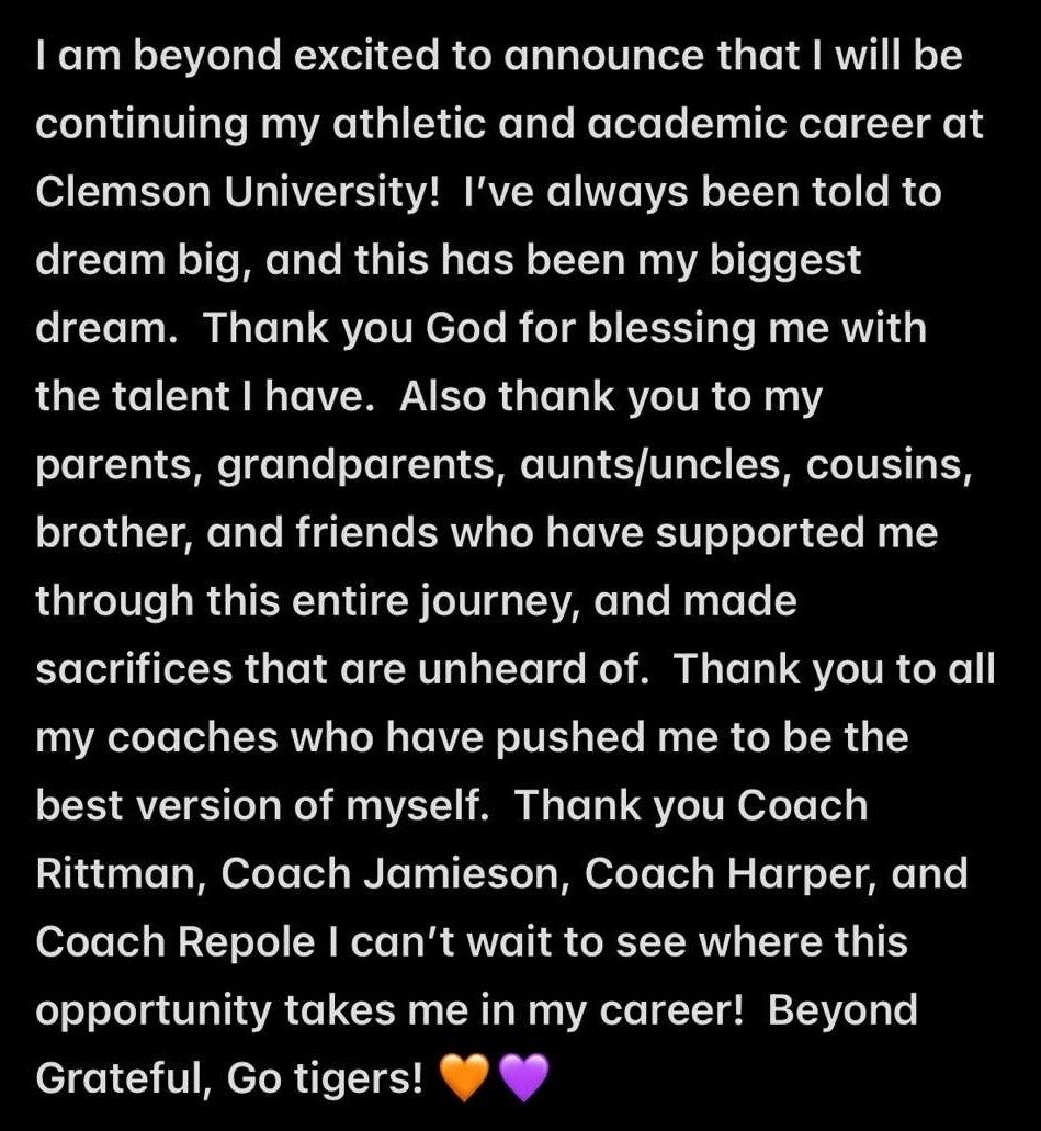 LD Softball: From your perspective, what sold Clemson on being the place for you?