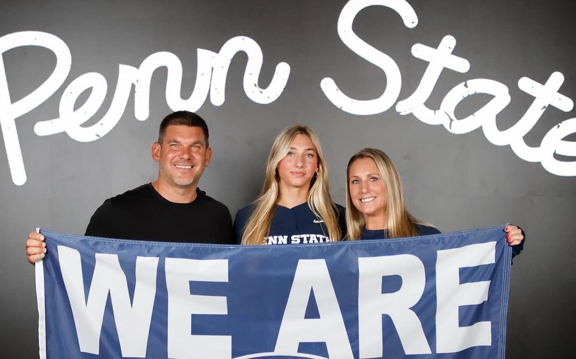 Surrounded by her immediate family—including her father Bart, her mother Tracey, her brothers Cole and Bryce and her grandparents, Steve and Maureen Yarosz—Grace finalized her college decision and, once the phone call was done, the family had a joyful celebration in the kitchen decorated in Penn State blue and white colors.