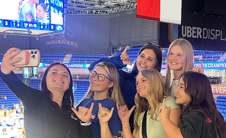 Kinsey (in black shirt, far right)) on her official visit to UT Arlington checking out a volleyball game with her fellow recruits.