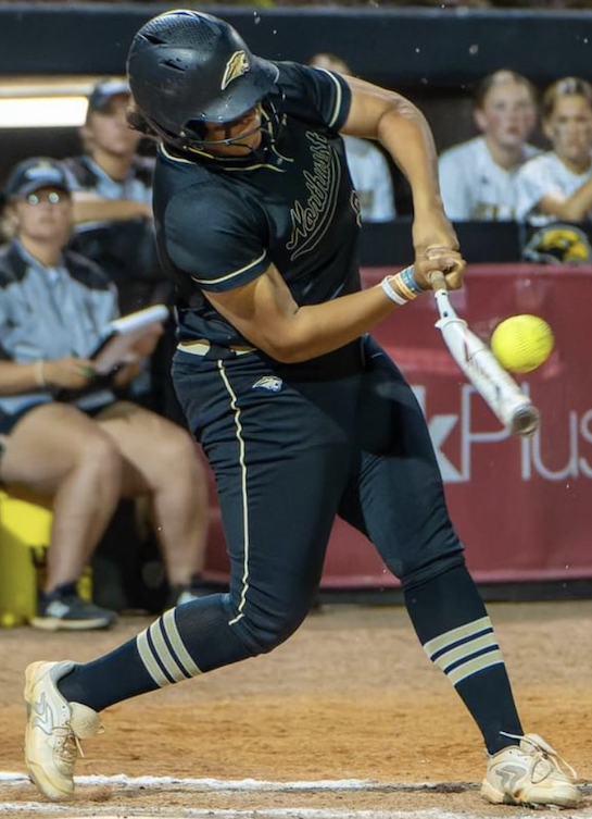 Jaliya crushing a home run for her Northwest Rankin High (Miss.) team. Photo by Blake Harrell.