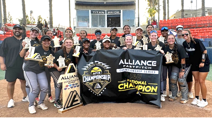 #7 Texas Bombers Gold-Malpass outlasted #6 Corona Angels-Tyson in a 3-game series that featured two run-rule games and a massive 7th-inning comeback to capture the 14U Alliance national championship on Sunday at Cal State Fullerton.