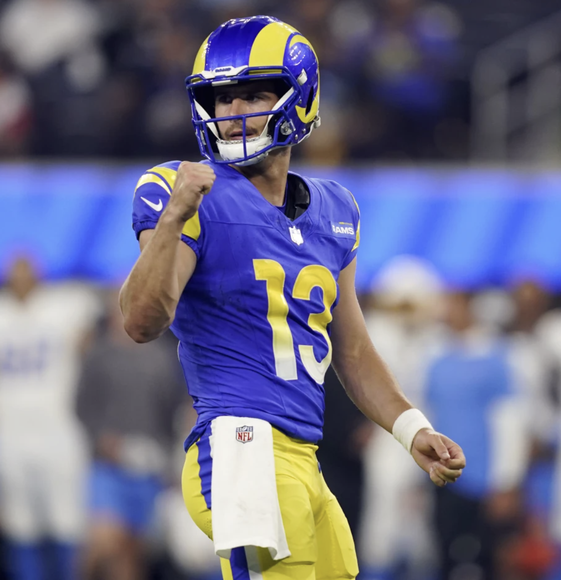 Rams quarterback Stetson Bennett – Olivia’s older brother – was a 4th round pick by the team in the 2023 NFL Draft. Photo: courtesy of AP/Ryan Sun.