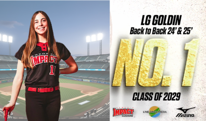 On April 4, Lilah Grace (“LG”) Goldin, a speedy power-hitting shortstop for the Georgia Impact team coached by Jason Cleghorn, was named as the No. 1 prospect in the Class of 2029 Line Drive HOT 100 for the second straight year.