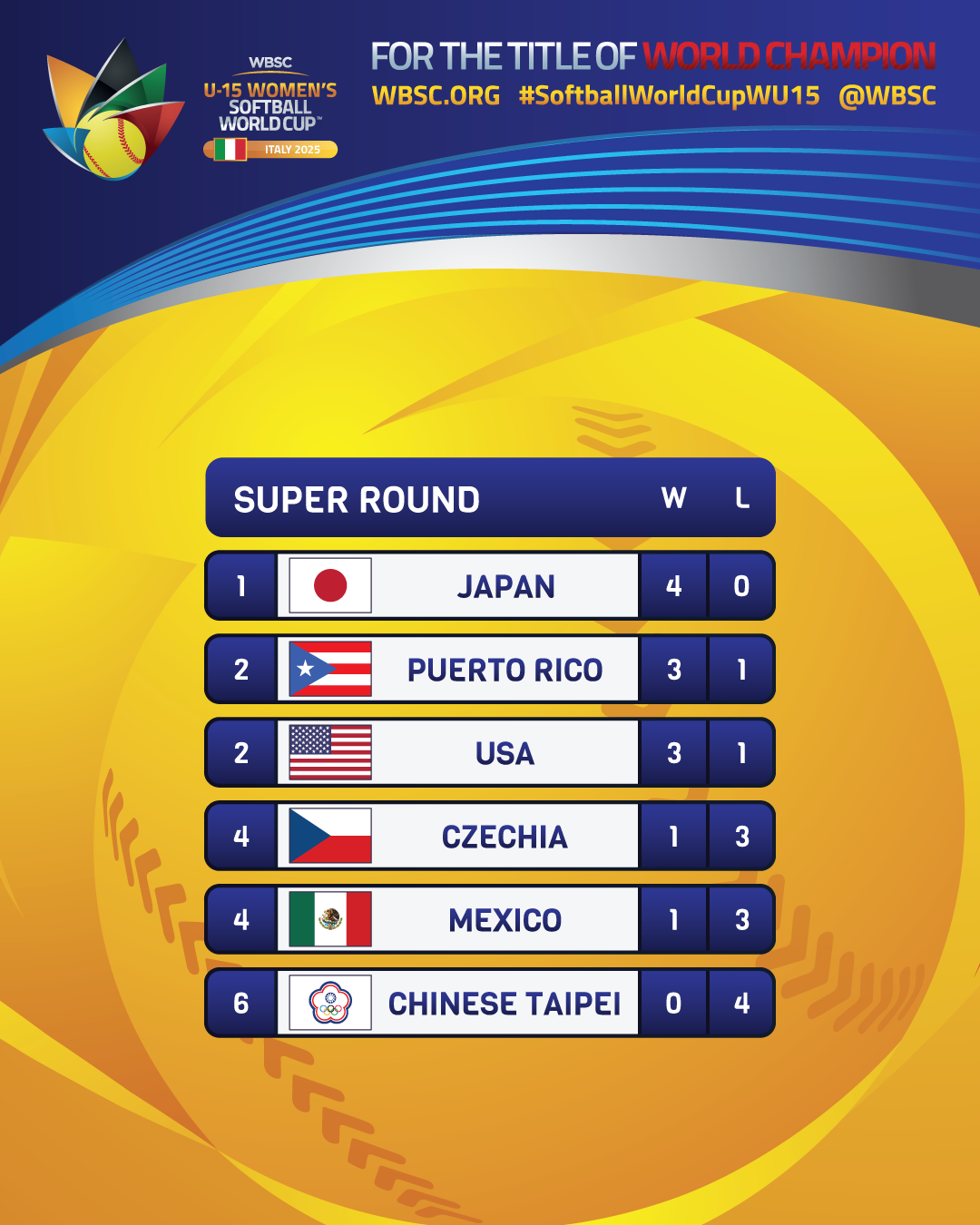 Chinese Taipei (0-3) could create a three-way tie in fourth place with a win against Mexico. Czechia will face Japan to close the Super Round.