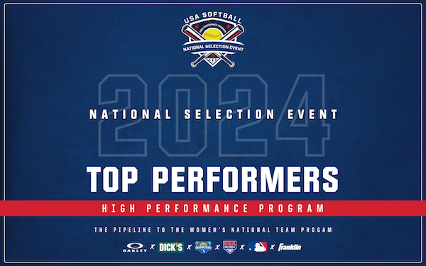 OKLAHOMA CITY — The Top Performers of the 2024 USA Softball High Performance Program (HPP) National Selection Event, presented by Dick’s Sporting Goods, have been officially announced, highlighting top-ranked athletes across five age divisions: U-13, U-14, U-15, U-16, and U-17.