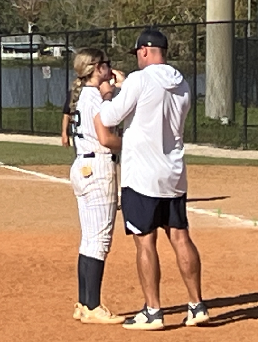 It appeared that Coach Lombardi was scouting the Impact Gold’s strong 2027 pitching staff which includes several top prospects including righthander Macie Bryant, ranked as the No. 1 player in the 2027 Line Drive HOT 100 which was released in late July, 2024.