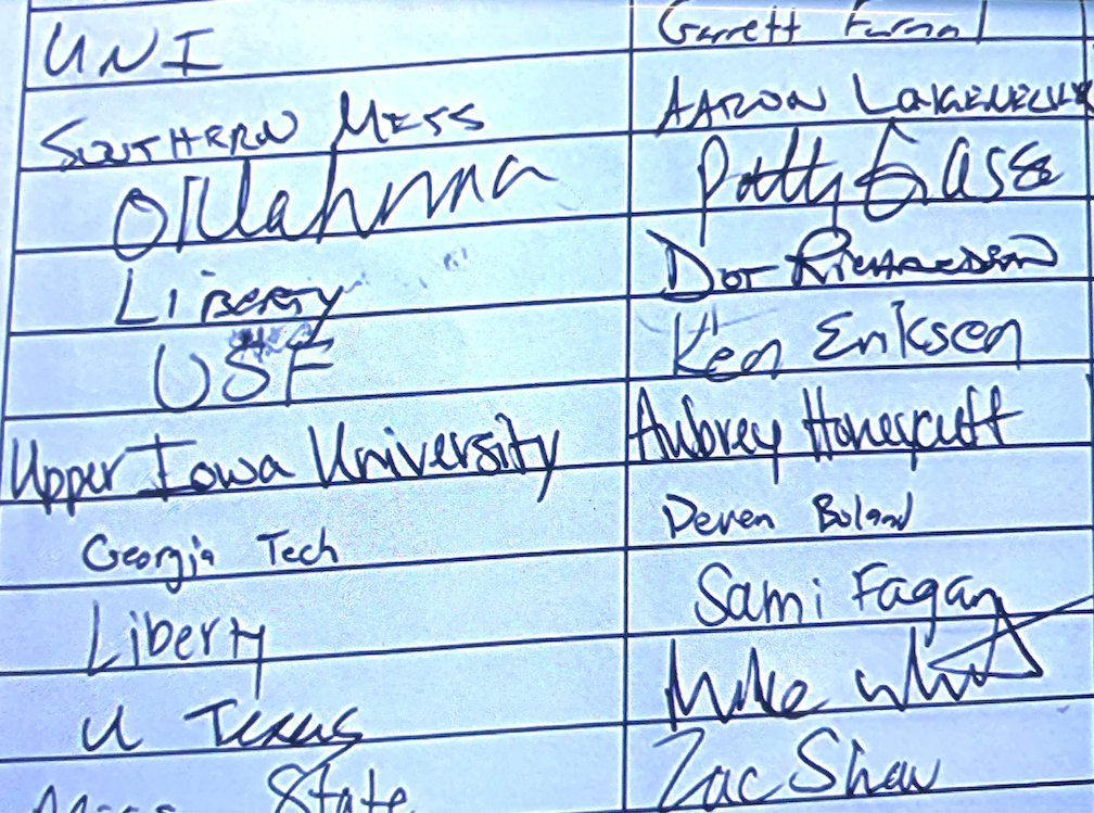 And, as shown by this photo of the coaches’ sign-in page, there were some interesting things to note today, specifically, two things that jumped out and grabbed our attention: