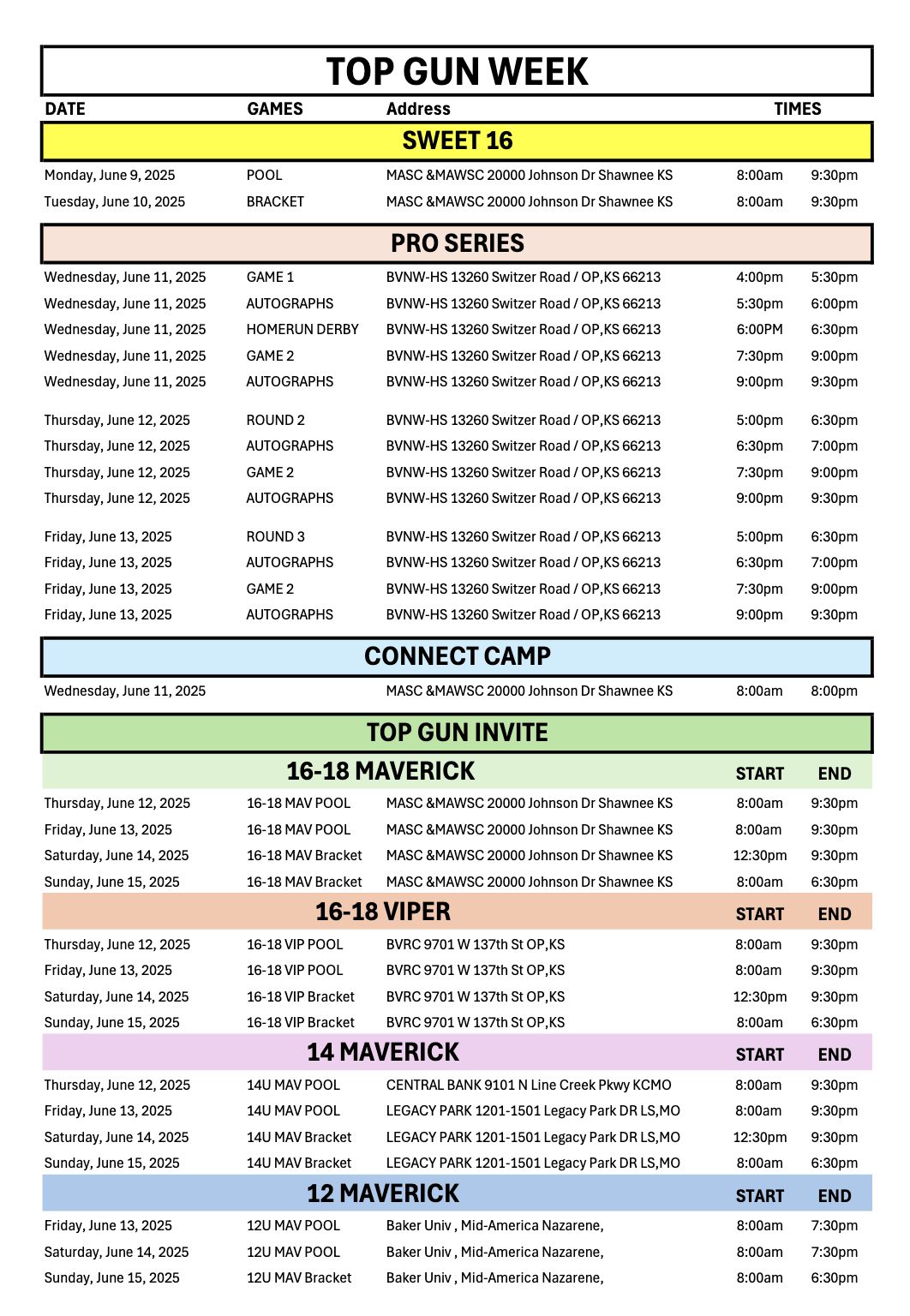 Today’s event—the CONNECT Camp – Kansas City – will include college programs who have coaches on-site such as the National Champion Texas Longhorns as well as more than 25 elite programs including ones from the SEC, Big 12, ACC, Big Ten… click HERE to see which colleges are expected to be in attendance today.