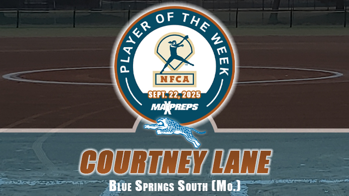 Blue Springs South’s (Mo.) Courtney Lane captured the latest MaxPreps/NFCA National High School Fall Player of the Week award, the Association announced on Monday.