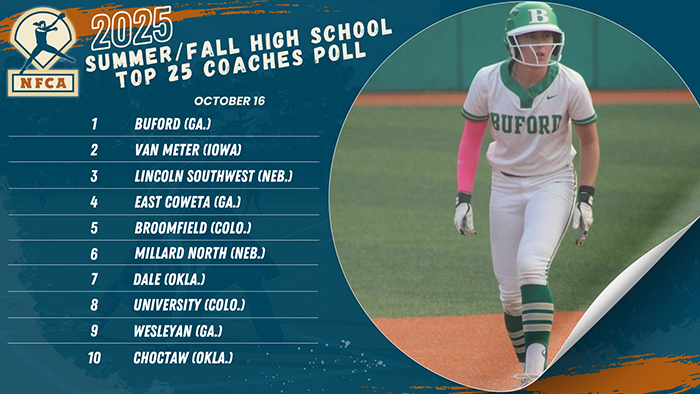 Buford (Ga.) High did not allow a run for another week to remain perfect and atop the NFCA Summer/Fall High School Top 25 Coaches Poll for a fifth straight week.