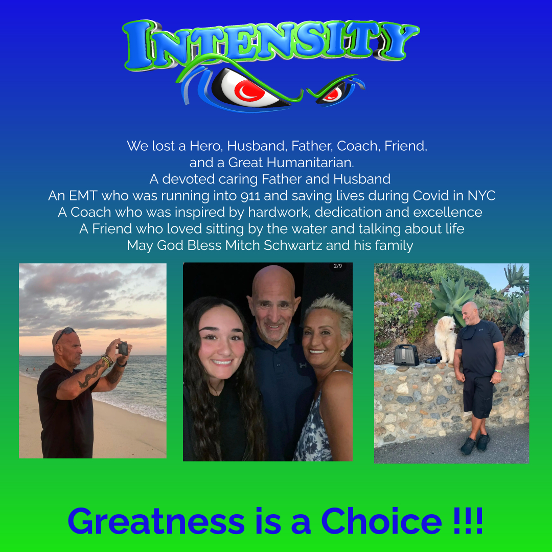 “Whether it was 9/11 or COVID, he was always there to help,” he remembers. “Mitch was a giver and gave all of himself to his family friends and Intensity players. One of his proudest moments was when Jenna started to coach with him.”