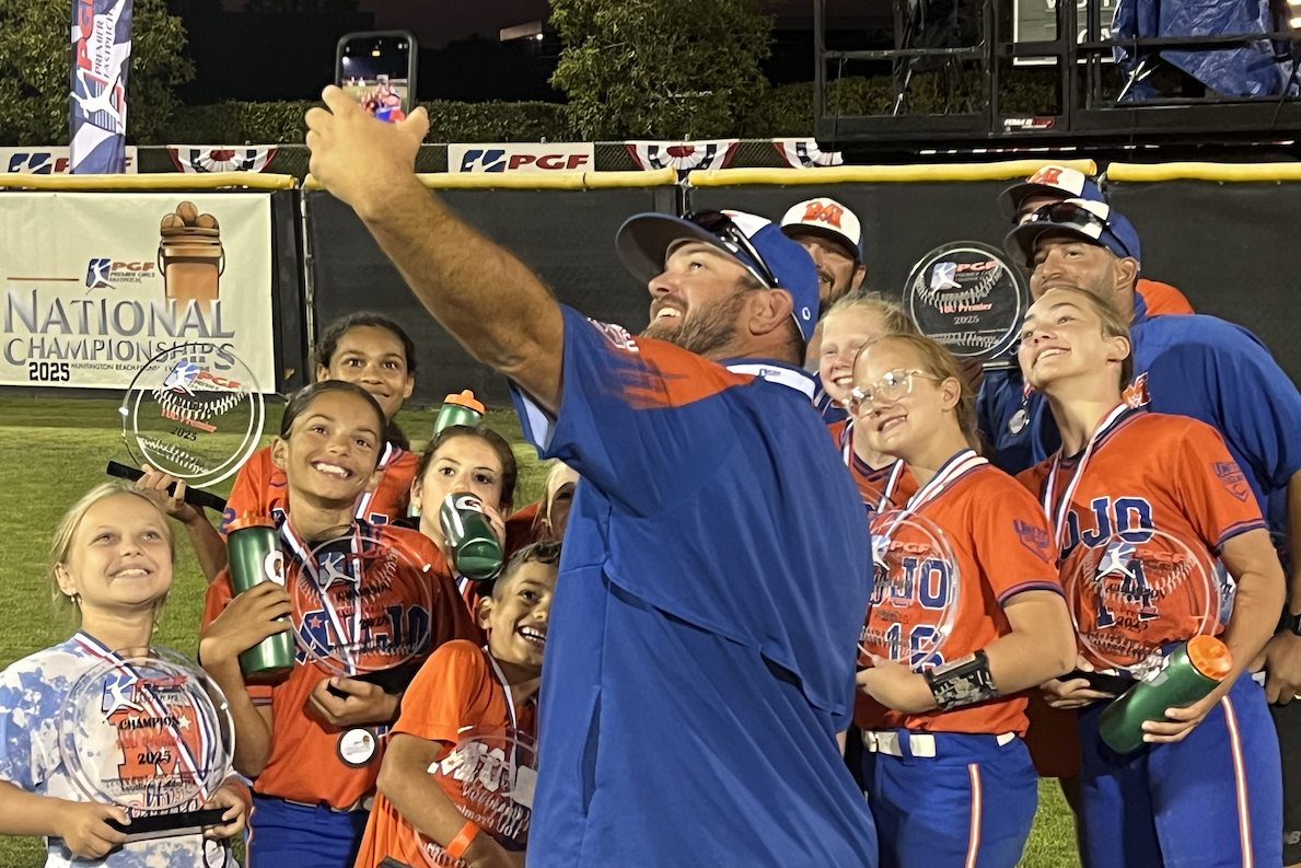 Head Coach Roger Edwards takes a selfie with his team after the PGF 10U championship game, a 11-0 run-rule win.