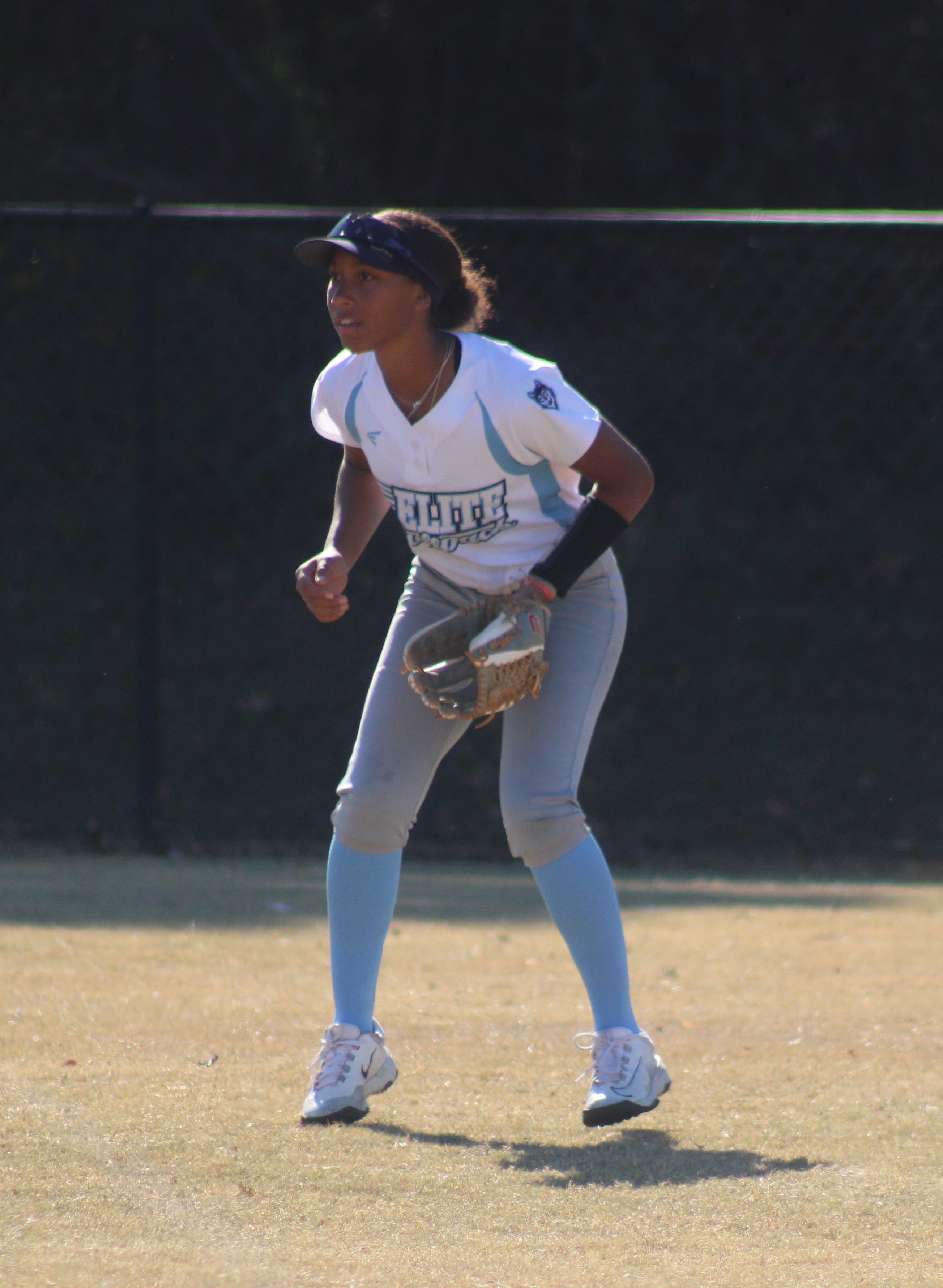 Jolie makes the play in the outfield for her Carolina Elite 18U team.
