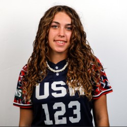 “Numbers wise, she’s already throwing in the 59-61 mph range, and her drop ball numbers are up there with the likes of college pitchers. Taylor is developing a rise ball to compliment her drop, but she throws a curve, drop, and change extremely effectively and for a very high swing and miss rate. She’s extremely fun to watch compete and has a fun and fiery energy on the mound.”
