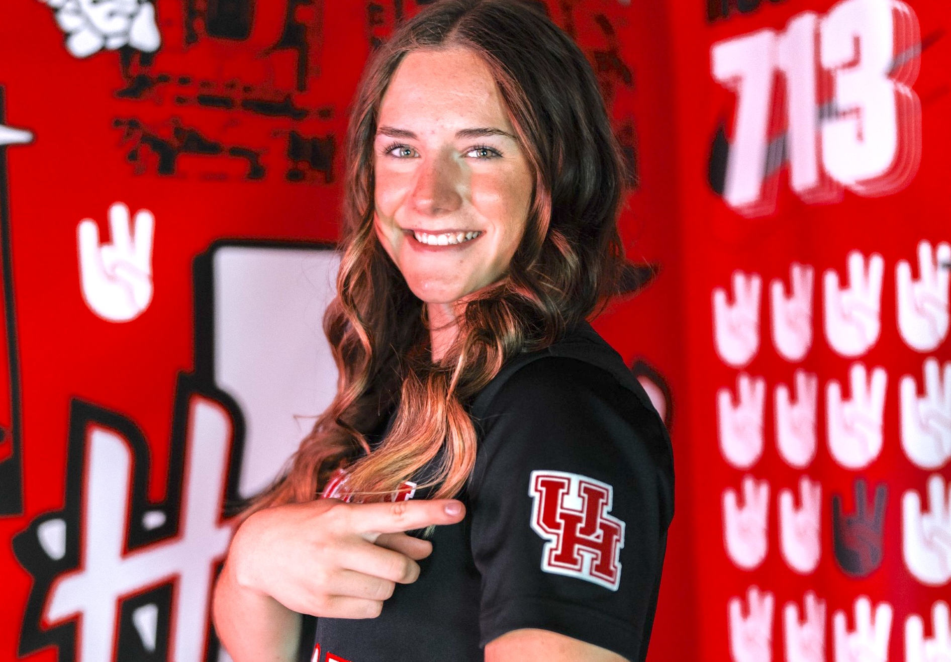 That was the case for today’s spotlight athlete, a prolific power-hitting catcher who will play for a team about 250 miles to the southeast of her home in North Texas and who committed to a Big 12 school immediately after her official visit there…