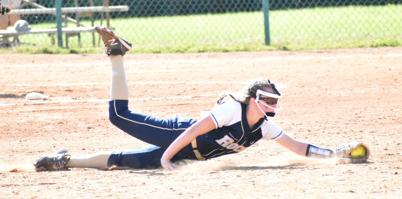 Madlynn Grindstaff stretches out to make the diving catch for her Rock Gold 16U - Waye team.