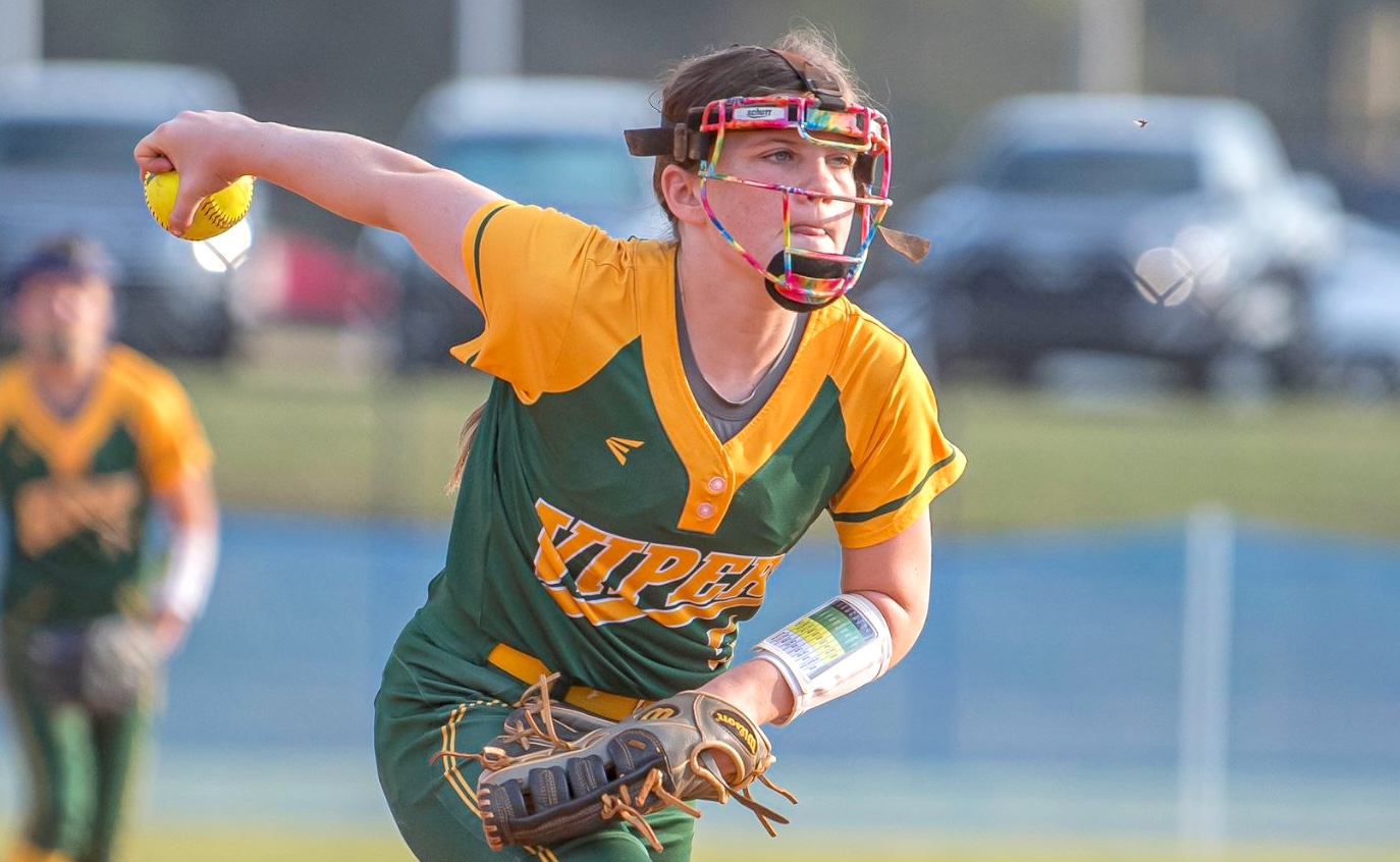 Makalyn Williams in her windup for the Atlanta Vipers - Trahan team.