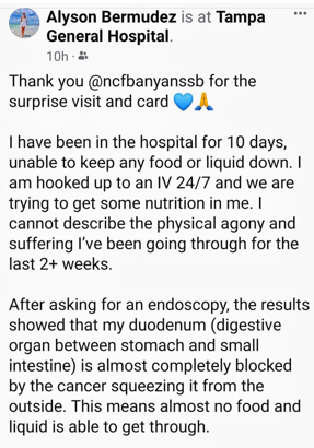 As of today, the GoFundMe has raised a bit more than 35 percent of the goal but as of this week—exactly six months after initial cancer treatment was started— Coach Bermudez’s health, pain and discomfort has worsened as she recently detailed on her social media: